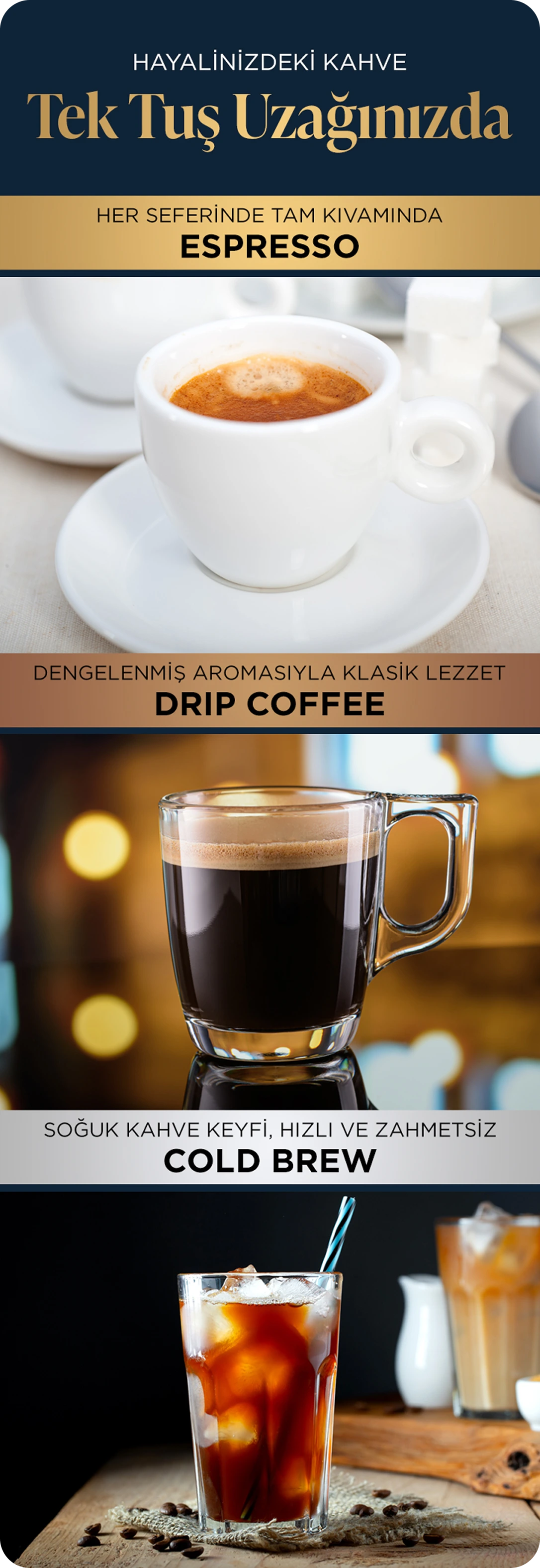 با یک دستگاه، طیف متنوعی از نوشیدنیهای قهوه را مطابق با سلیقه خود تهیه کنید.