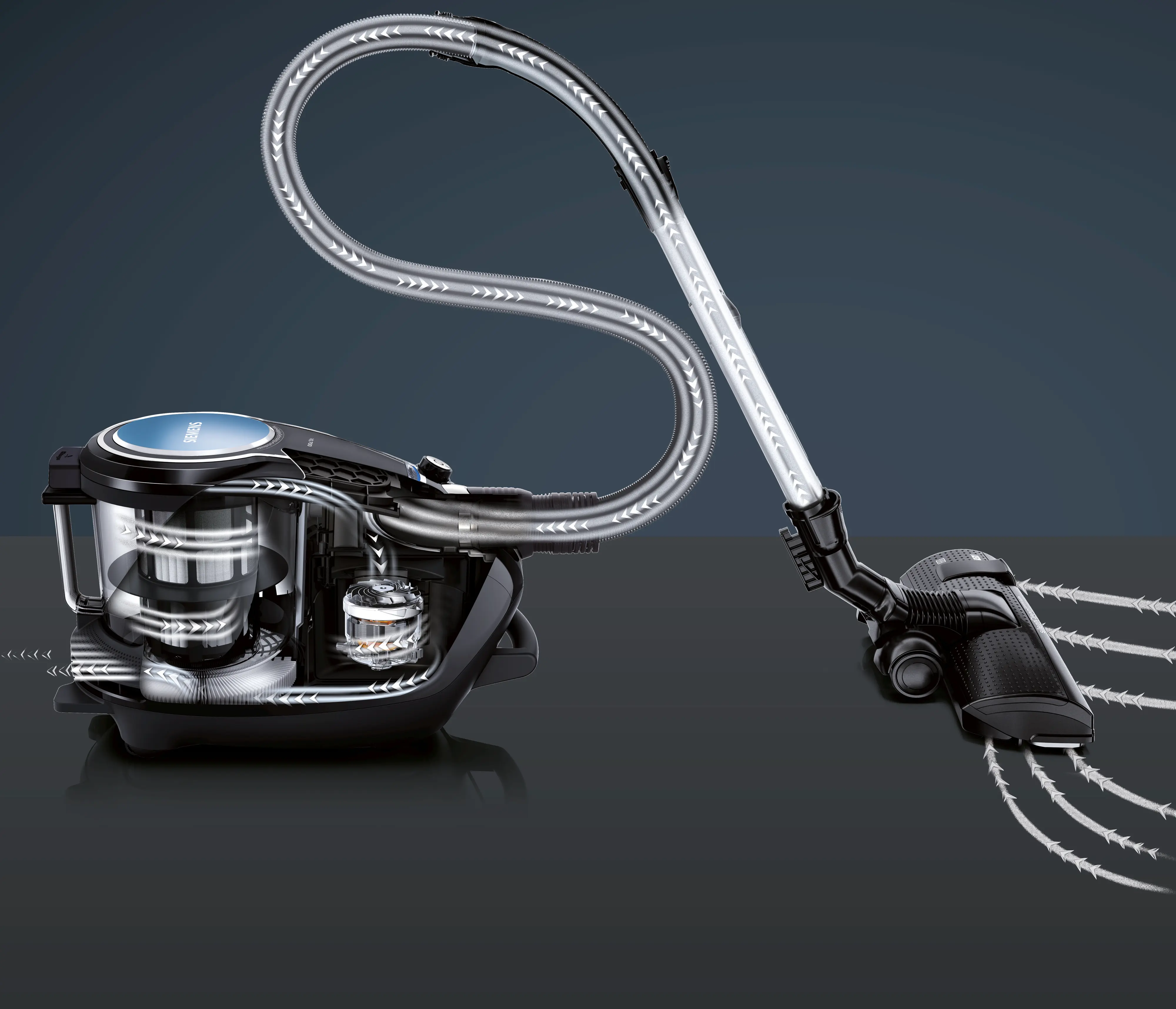 اساس این سیستم بسیار کارآمد، ترکیب منحصربهفردی از موتور highPower، نازل با عملکرد بالا، آببندی بهینه جریان هوا و کیسه گرد و غبار نوآورانه powerProtect است. با استفاده از این فناوری پیشرفته زیمنس، میتوان با مصرف انرژی کمتر، نتایج تمیزکاری چشمگیری به دست آورد.