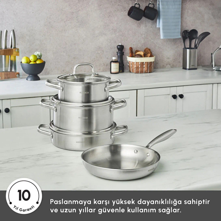 ست قابلمه و تابه استیل ۷ پارچه Karaca Power Steel 316+ 3-Ply Akita با کف القایی