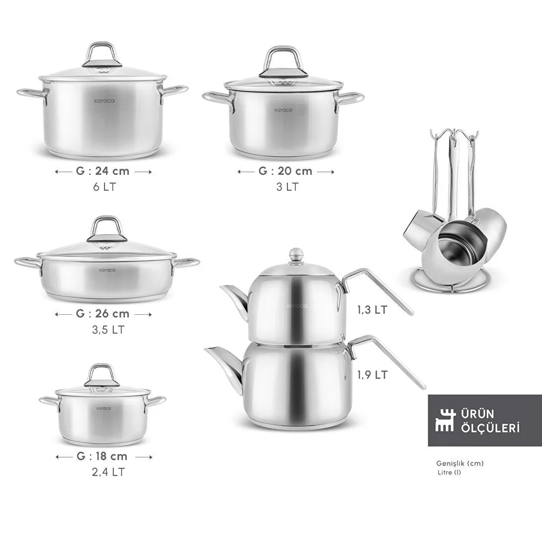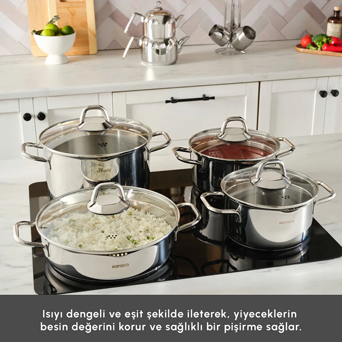 ست قابلمه، چایساز و قهوهجوش استیل ۱۵ پارچه Karaca Vapor با کف القایی