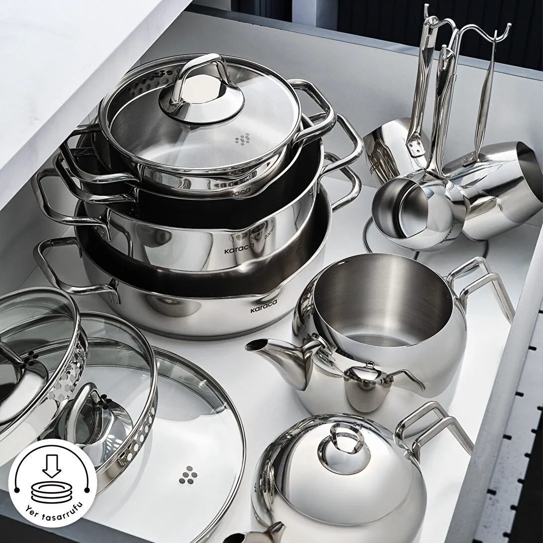 سرویس قابلمه و ست جهازیه استیل ۱۵ پارچه برند Karaca مدل Vapor