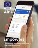 اپلیکیشن Air+ تجربهای هوشمند برای تنفس هوای پاک و سالم ارائه میدهد. این اپلیکیشن کیفیت هوای داخل و خارج را بهصورت لحظهای پایش میکند و با امکاناتی مانند کنترل از راه دور دیجیتال، تایمر هوشمند، و سازگاری با دستیارهای صوتی الکسا و گوگل هوم، کنترل کامل را در خانه و حتی خارج از خانه در اختیار شما قرار میدهد.