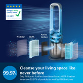 جریان هوای قدرتمند با سرعت ۲۷۰ متر مکعب در ساعت (CADR) هوا را به تمام گوشههای اتاق پخش کرده و حتی اتاقهای بزرگ تا ۷۰ متر مربع را به طور کامل تصفیه میکند. این دستگاه شما را از باکتریها، ویروسها، گردهها، گرد و غبار، شوره حیوانات خانگی، گرد و غبار خانگی، گازهای مضر، بوها و سایر آلایندهها محافظت میکند.