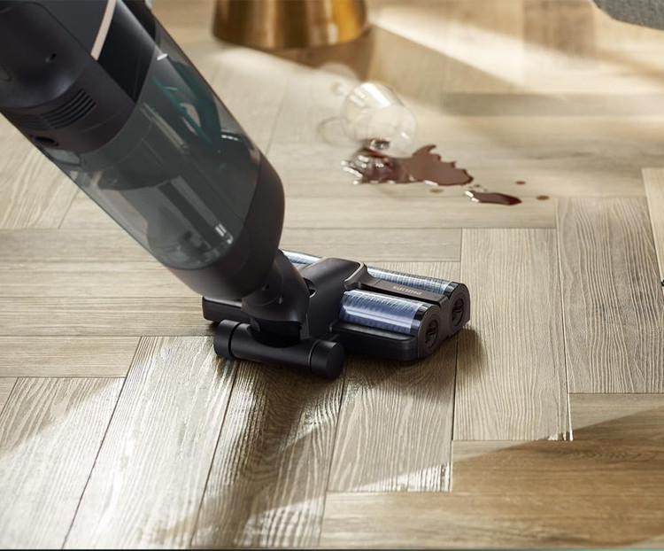 نازل AquaSpin: این دستگاه از فناوری شستوشوی مرطوب استفاده میکنه که با آب و برسهای چرخان کار میکنه. این سیستم برای کفهای سخت مناسبه، اما روی فرش یا موکت ممکنه باعث خیس شدن بیش از حد یا آسیب به بافت فرش بشه.
