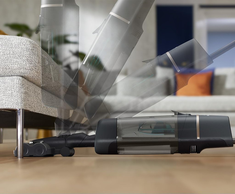 طراحی انعطافپذیر دستگاه امکان دسترسی به زیر مبلمان و نقاط سختدسترس را فراهم میکند. بدون بلند کردن سری یا از دست دادن تماس با سطح زمین، دستگاه میتواند بهصورت کاملاً صاف تنظیم شود.