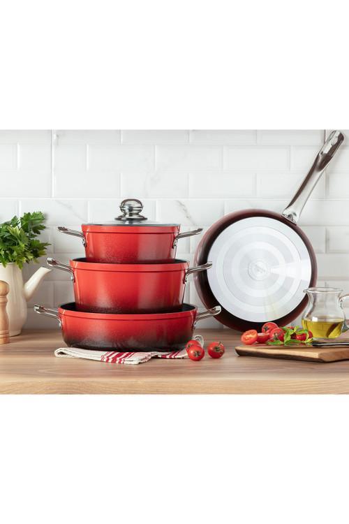 سرویس قابلمه تیتانیومی ۷ پارچه مادام کوکو مدل Titanium professional قرمز