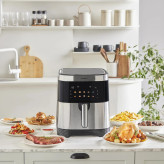دارای **10 برنامه پخت متفاوت** است که به شما امکان میدهد غذاهایی سالم و متنوع مانند سیبزمینی سرخکرده، پیتزا، کیک، سبزیجات، بال مرغ، مرغ کامل، گوشت، ماهی و شاهبلوط را آماده کنید. همچنین با تنظیم دمای پایین، میتوانید یخ مواد غذایی را بهراحتی باز کنید.