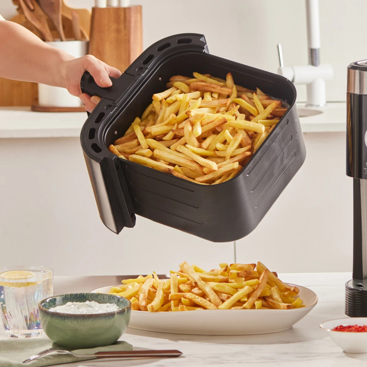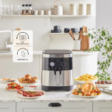 دکمههای زیبای تنظیم دما و زمان، استفادهای آسان فراهم میکنند و به شما امکان میدهند انواع غذاهای سالم و خوشطعم مانند سیبزمینی سرخکرده، پیتزا، کیک، سبزیجات، بال مرغ، مرغ کامل، ماهی و شاهبلوط را بپزید. همچنین میتوانید با تنظیم دمای پایین، یخ مواد غذایی را بهآسانی باز کنید.