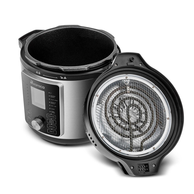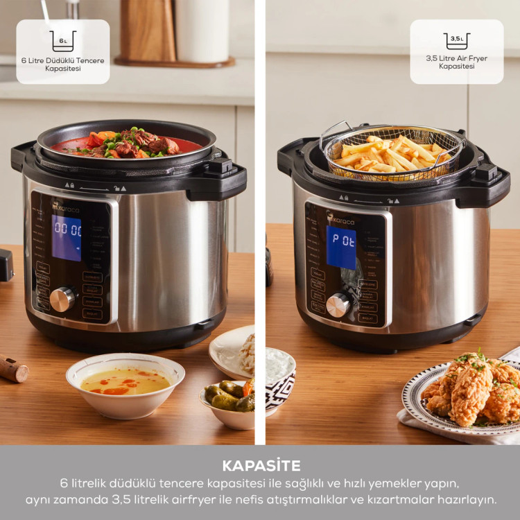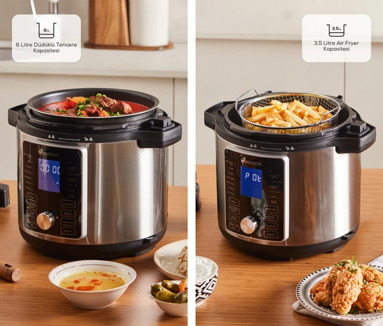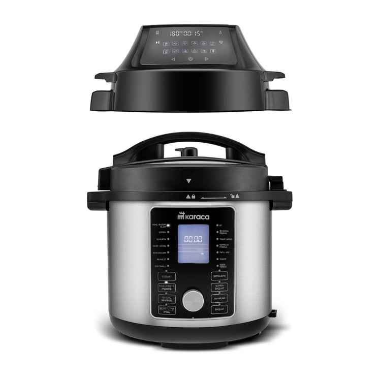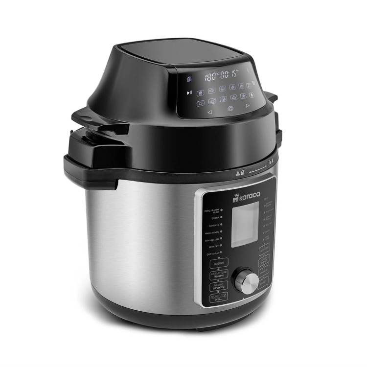 Karaca Cooker 2 in 1 6L Çok Amaçlı Basınçlı Pişirici Akıllı Elektrikli Düdüklü Tencere ve Airfryer Silver