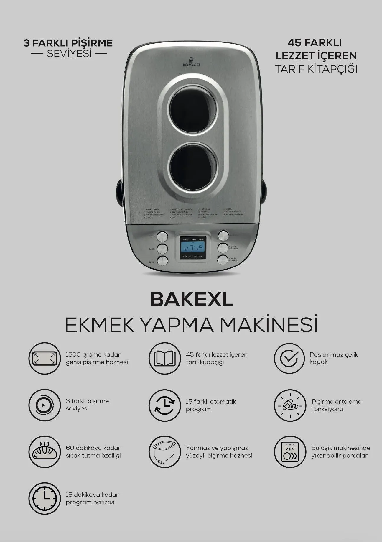 دستگاه پخت نان خانگی ۱۵ کاره Karaca ترکیه مدل Bake XL