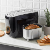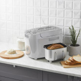با استفاده از تایمر میتوانید برنامه را از قبل تنظیم کرده و در زمان دلخواه، مثلاً برای سحر یا صبحانه، نان تازه و داغ آماده داشته باشید. قابلیت گرم نگهداشتن تا یک ساعت نیز باعث میشود نان شما در طول صبحانه گرم بماند. کتابچه شامل 45 دستور پخت متنوع نیز به شما کمک میکند طعمهای جدیدی را امتحان کنید.