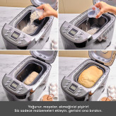 ماشین نانپز، مرباساز، ماستساز و خمیرزن کاراجا مدل Bake XL با بدنهای از جنس استیل ضد زنگ و رنگ سفید، دارای ظرفیت 1500 گرم و همراه با کتابچهای شامل 45 دستور پخت مختلف است.