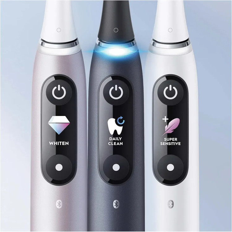 مسواک برقی اورال بی مدل iO 9 دو قلو به لطف فناوری پیشرفته و عملکرد تمیز کنندگی عالی، به حذف پلاک بیشتر در مقایسه با مسواکهای سنتی کمک میکند. به لبخندی تمیزتر و سالم تر سلام کنید.