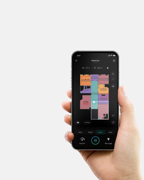 فناوری AI.Map™ 2.0 RoboVac با هدایت نقشههای چند طبقه که بهطور خودکار تولید میشوند، میداند کجا را تمیز کند، چه در طبقه اول، زیرزمین یا اتاق زیر شیروانی. مناطق تمیز کردن، مناطق ممنوعه و موارد دیگر را از طریق برنامه سفارشی کنید.