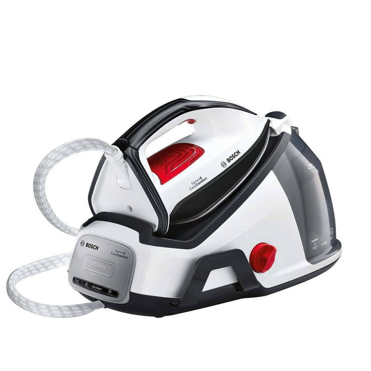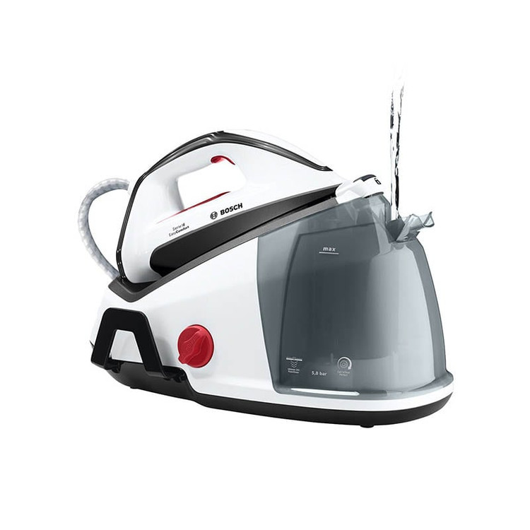اتو مخزن دار بوش BOSCH مدل TDS6040 با توان 2400 وات جزء سری 6 اتو مخزن دار های حرفه ای شرکت بوش میباشد که با ترکیب رنگ سفید و مشکی جلوه منحصر به فردی به دستگاه میبخشد. جنس کفی دستگاه از CeraniumGlisséePro بوده که موجب حرکت آسان و روان روی پارچه میشود. مخزن دستگاه با ظرفیت 1.3 لیتر امکان اتوکشی پیوسته را فراهم می نماید. میزان بخار دهی پیوسته این اتو 120 گرم و بخاردهی لحظه ای آن به 380 گرم در دقیقه میرسد که چین و چروک های عمیق را به راحتی از بین میبرد. پنل این دستگاه دارای کلید روشن و خاموش ، عملکرد رسوب زدایی و حالت Eco میباشد. با فعال نمودن حالت Eco تا 40% در مصرف آب و 25% در مصرف انرژی صرفه جویی میشود. در صورت عدم استفاده از دستگاه پس از 8 دقیقه به صورت اتوماتیک خاموش میشود. سیستم ضد رسوب منحصر به فرد Calc’nClean تمامی رسوبات را درون محفظه ای مخصوص قرار میدهد و توسط تایمر ، زمان تمیز نمودن مخزن رسوبات را یاد آوری می نماید. توسط قفل ایمنی تعبیه شده روی دستگاه میتوانید اتو را به مخزن متصل نمایید و به راحتی حمل و جابجا نمایید.