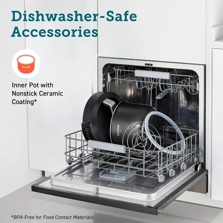 تمیز کردن آسان: فولاد ضد زنگ، محفظه مقاوم در برابر اثر انگشت، شکاف قابلمه 12.5 میلیمتری عریض، درب قابل شستشو در ماشین ظرفشویی، دیگ داخلی و لوازم جانبی، تمیز کردن را راحت میکند.