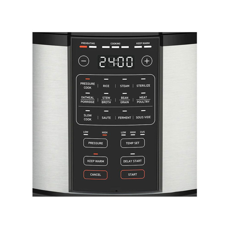 Pressure Cook, Rice, Steam, Oatmeal/Porridge, Stew/Broth, Bean/Grain, Meat/Poultry, Yoghurt, Cake, Slow Cook, Sauté, Sous Vide, Keep Warm