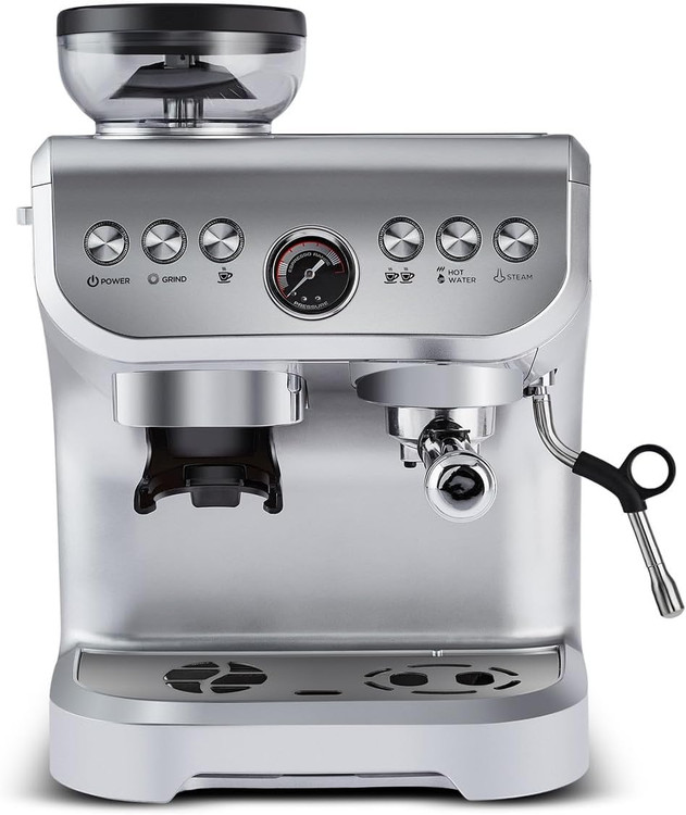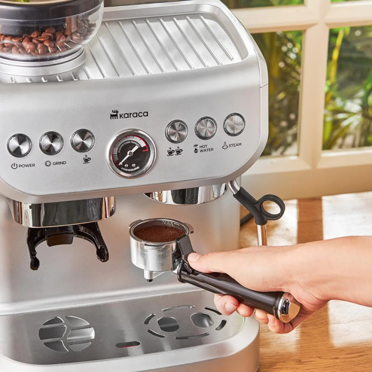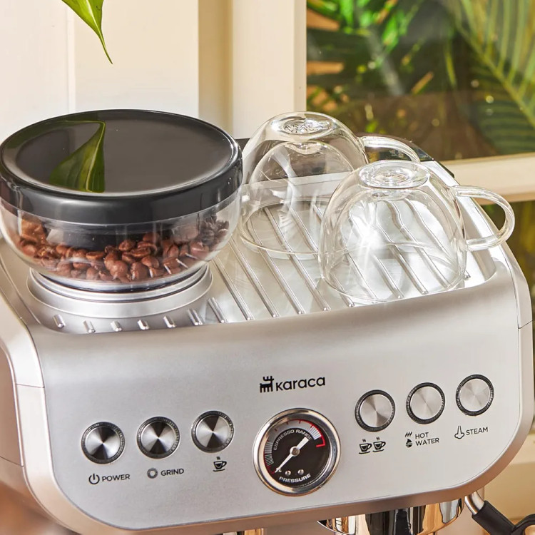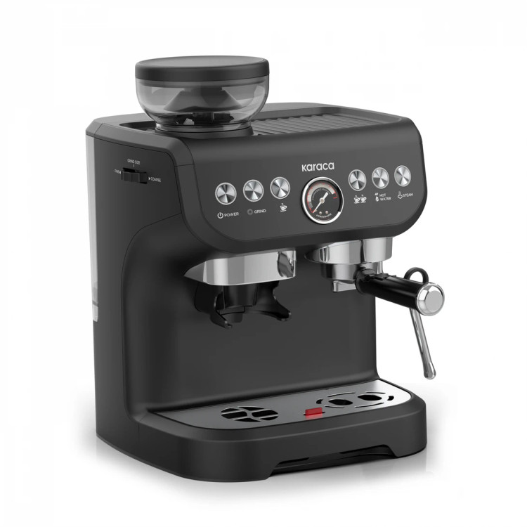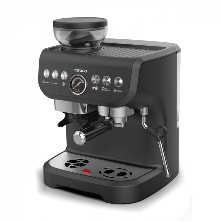 **دستگاه قهوه ساز Karaca Coffee Art Barista با آسیاب قهوه، کفساز شیر و فشار 15 بار برای تهیه اسپرسو، لاته، کاپوچینو، آمریکانو و غیره - 2 لیتر**