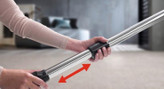 طراحی منحصربهفرد Miele به شما امکان میدهد لوله تلسکوپی جاروبرقی Comfort را بهطور شهودی به طول دلخواه تنظیم کرده و در همان طول قفل کنید. قطر افزایشیافته، حجم جریان هوا را بیشتر کرده و نتایج تمیزکنندگی عالی را پشتیبانی میکند. جزئیات کوچکی مانند پوشش لاستیکی در بالای لوله، استفاده از محصول را بسیار کاربردی میکند. این لوله هنگام تکیه دادن به دیوار سر نمیخورد.