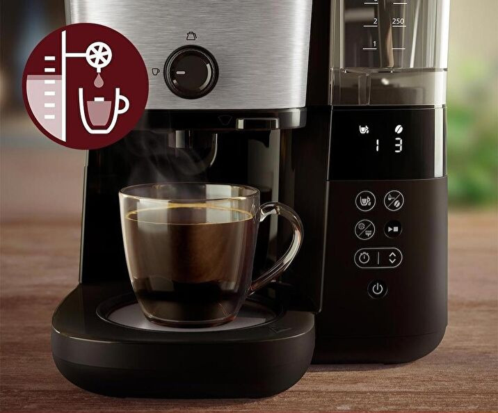 صفحهنمایش LED خوانا به شما امکان میدهد شدت طعم (از ۱ تا ۳)، تعداد فنجانها (۱ تا ۱۰) و درجه سختی را تنظیم کنید. قهوه را درست مطابق سلیقهتان و در دمای ایدهآل تهیه کنید.