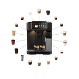 میتوانید بهراحتی مقدار آب و شیر، غلظت قهوه و دمای آن را از طریق صفحهنمایش تنظیم کنید.