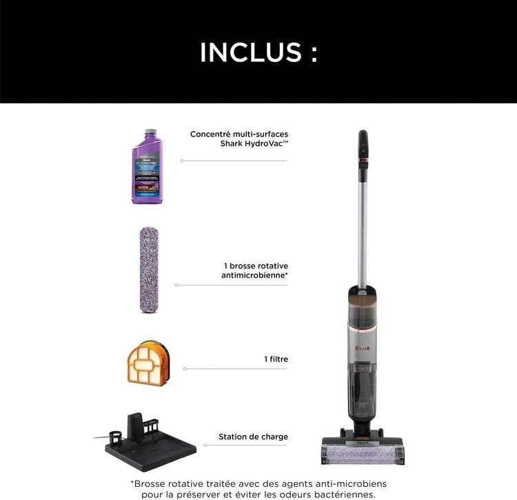 Shark HydroVac شامل مایع تمیزکننده چندمنظورهای است که بوی نامطبوع خانه را از بین میبرد و هوای تازهتری ایجاد میکند.