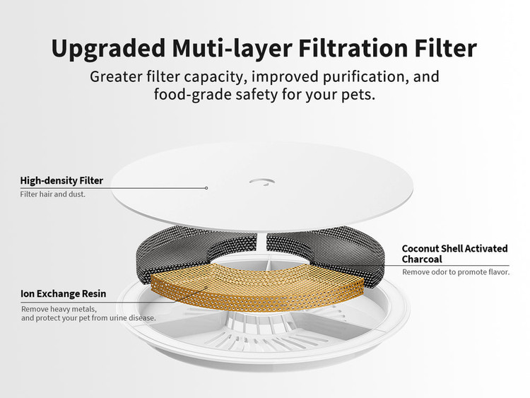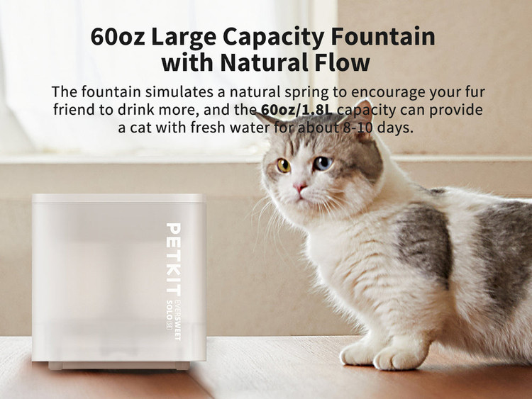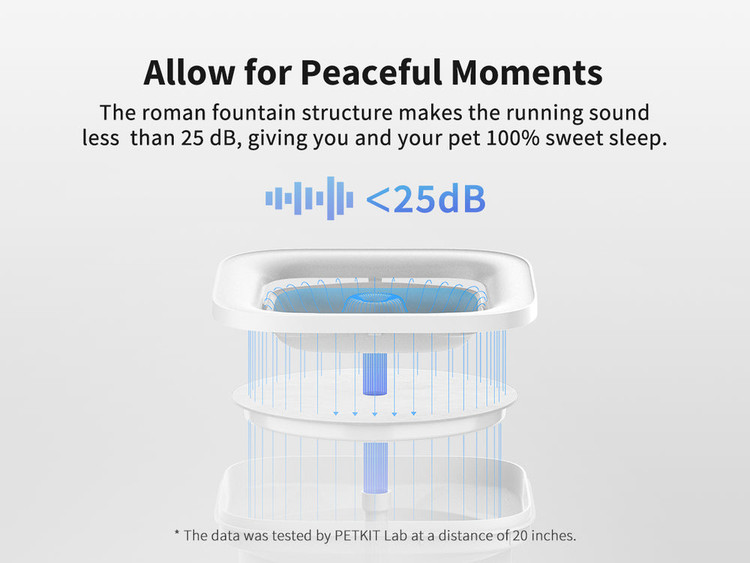 چشمه آب پرقدرت برای گربهها: این طراحی توجه گربهها و سگها را جلب میکند و مقدار آبی که حیوان خانگی شما مینوشد را افزایش میدهد. این طراحی همچنین میتواند نویز را کاهش دهد. پمپ ارتقا یافته ۳.۰ نیز میتواند نویز را به ۲۵ دسیبل کاهش دهد.