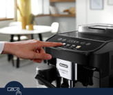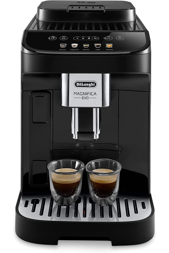 Magnifica Evo با فناوری پیشرفته، نوشیدنیهای اصیل و طراحی شیک فلزی-مشکی، تجربه De'Longhi را ملموس میکند. از طریق صفحه نمایش لمسی رنگی شهودی و با ۵ دستور یکلمسی میتوانید اسپرسوی ایتالیایی بینقص و دیگر نوشیدنیهای قهوه و شیر را تهیه کنید. با سیستم ویژه LatteCrema از بافت صاف و ابریشمی کف شیر غلیظ و کرمی لذت ببرید.