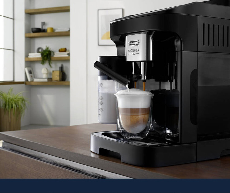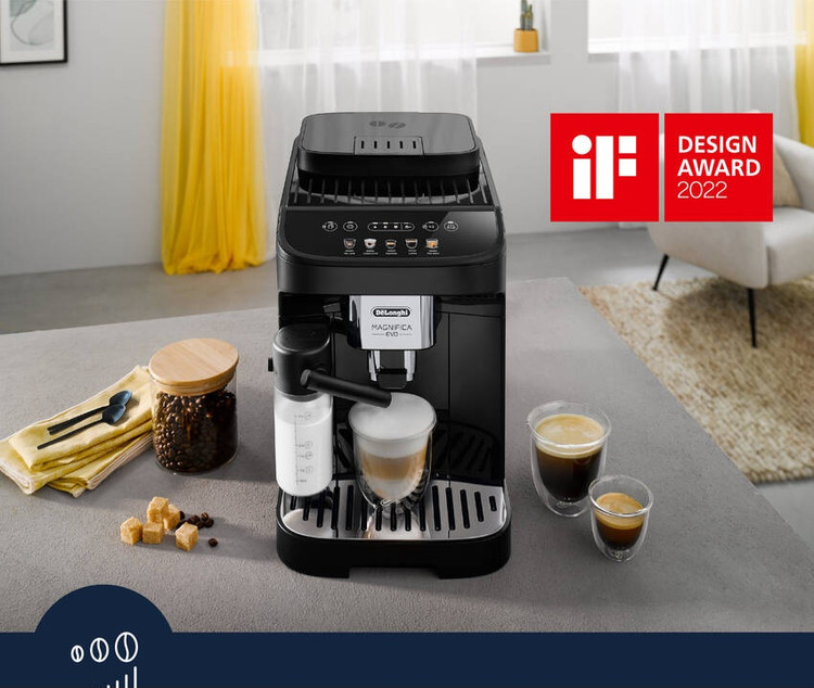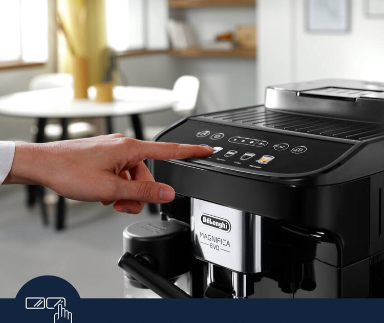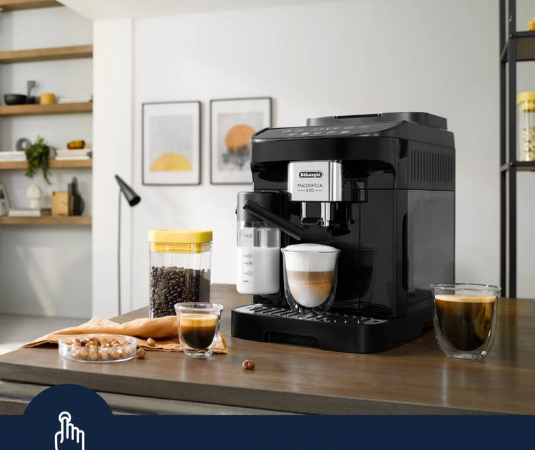 Magnifica Evo با فناوری پیشرفته، نوشیدنیهای اصیل و طراحی شیک فلزی-مشکی، تجربه De'Longhi را ملموس میکند. از طریق صفحه نمایش لمسی رنگی شهودی و با ۵ دستور یکلمسی میتوانید اسپرسوی ایتالیایی بینقص و دیگر نوشیدنیهای قهوه و شیر را تهیه کنید. با سیستم ویژه LatteCrema از بافت صاف و ابریشمی کف شیر غلیظ و کرمی لذت ببرید.