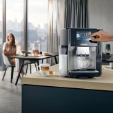 با اپلیکیشن چندکاره Home Connect، میتوانید دستگاه قهوهساز تمام اتوماتیک خود را از هر کجا کنترل کنید. ویژگی coffeeWorld به شما این امکان را میدهد که از میان انواع جدید و متنوع قهوههای بینالمللی انتخاب کنید. همچنین، ویژگی CoffeePlaylist به شما اجازه میدهد تا چندین سفارش نوشیدنی را به طور همزمان تنظیم کرده و به ترتیب آماده کنید؛ این ویژگی برای پذیرایی از مهمانهایتان ایدهآل است.