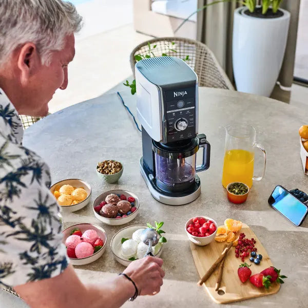با Ninja CREAMi Deluxe میتوانید تقریباً هر چیزی را منجمد کرده و به چیزهای بیشتری تبدیل کنید. دسرهای کلاسیک CREAMi مانند دسر یخزده، سوربه و جلاتو را تهیه کنید و حالا میتوانید در خانه یک اسلاش میوهای، فرابپه قهوه، ماست یخزده یا نوشیدنی یخزده درست کنید.