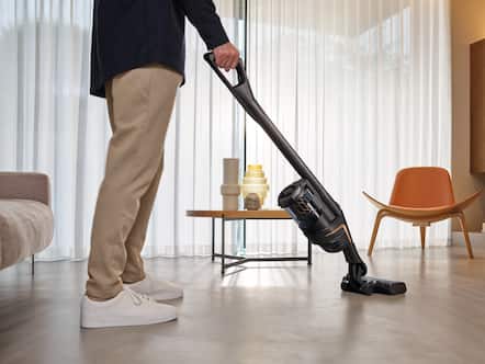 تمامی امکانات ممکن: چه نیاز داشته باشید که زیر مبلمان کمارتفاع را تمیز کنید یا گرد و غبار سقف را بردارید، با قرار دادن *PowerUnit* جاروبرقی *Triflex HX2* در قسمت بالایی، شما بیشترین انعطافپذیری را خواهید داشت. این ویژگی تمیز کردن زیر تختها یا کمدها را بسیار آسان میکند – برای داشتن خانهای کاملاً تمیز.
