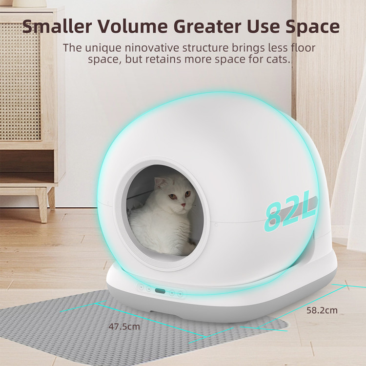 ابعاد کوچک، عملکرد بزرگ: طراحی نوآورانه و منحصر به فرد آن با استفاده از فضای کمتری از زمین، فضای بیشتری برای گربهها فراهم میکند. با عملکرد تمیزکاری UV و سنسورهای هوشمند، از طریق اپلیکیشن به شما اطلاعرسانی میکند.