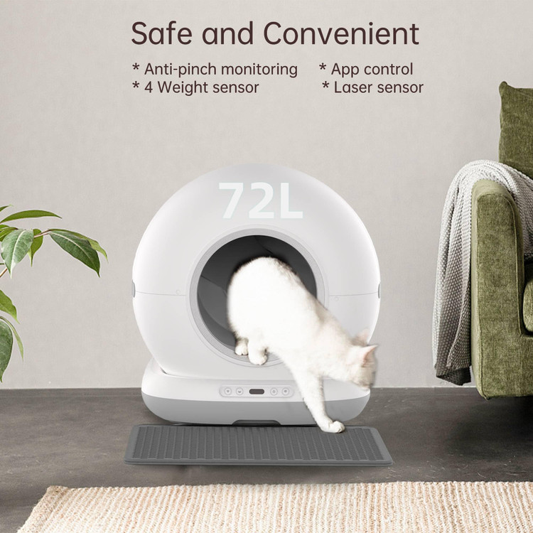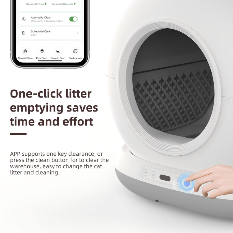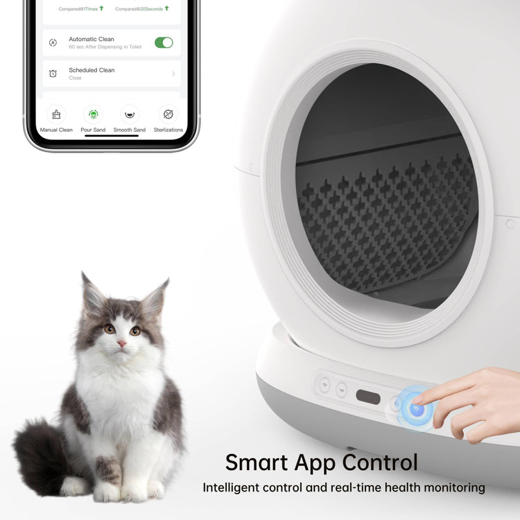 سنسورهای وزنی موجود در دستگاه تشخیص میدهند که گربه شما وارد شده است یا خیر، و سنسورهای حرکتی باعث میشود که در صورت نیاز، زمانی که گربه شما از دستگاه دور میشود، تمیزکاری خودکار آغاز شود.