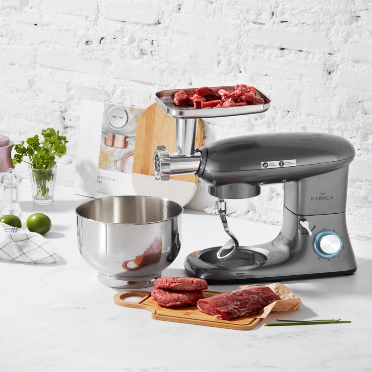 کاراجا مولتی شف ایستاده میکسر رنگ آنتراسیت ربات آشپزخانه 1900 وات 5.5 لیتری (با آپارات گوشتچرخکن / سوسیس-کالباس / آپارات کوفته داخلدار)