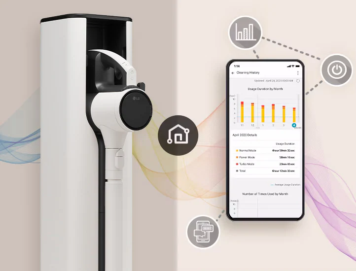 ThinQ به شما کمک میکند وضعیت فیلتر و میزان شارژ باتری را بررسی کنید، هشدارهای لازم را دریافت کنید، تمام تنظیمات را از طریق یک اپلیکیشن انجام دهید و حتی سابقه تمیزکاری دستگاه را ببینید.