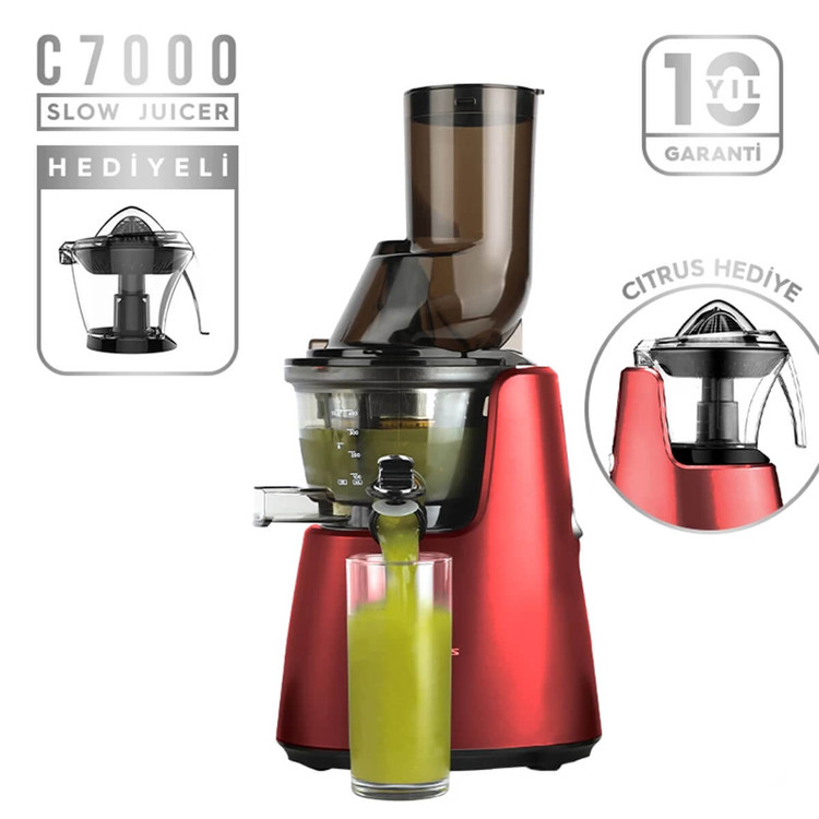 آبمیوهگیری **Kuvings C7000 Slow Juicer** یک مدل پیشرفته از سری **C7000** است که به دلیل عملکرد بالا و قابلیتهای ویژهای که دارد، مورد توجه کاربران قرار گرفته است. این آبمیوهگیری با تکنولوژی **پرس سرد** یا **Slow Juicing** طراحی شده تا با سرعت پایین آب میوهها و سبزیجات را استخراج کرده و ارزش غذایی آنها را به بهترین شکل حفظ کند. در اینجا مشخصات و ویژگیهای دقیقتری از این محصول را بیان میکنم:
