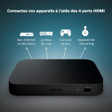 Sync box دارای چهار ورودی HDMI است که میتوانید رسانههای مختلف مانند کنسولهای بازی و دستگاههای پخش جریانی را به آن وصل کنید تا لامپهای Philips Hue شما با محتوای تلویزیون همگام شوند. از آنجایی که محتوای تلویزیونی باید از طریق یکی از دستگاههای HDMI وارد sync box شود، این دستگاه با برنامههای تلویزیون هوشمند سازگار نیست.