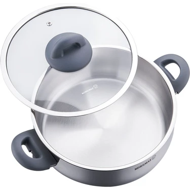 با دستههای باکالیت نسوز سرویس قابلمه Bella Rosegold راحتی را تجربه کنید و با دربهای شیشهای مقاوم در برابر حرارت، از آسایش در پختوپز لذت ببرید. این سرویس با سیستم **SOLAR BASE** که انتقال حرارت بالایی را روی انواع اجاقها، از جمله اجاقهای القایی، فراهم میکند، حداکثر صرفهجویی در زمان و انرژی را به همراه دارد.