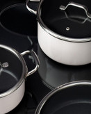 این سرویس قابلمه با پوشش امایه با کیفیت و مقاوم، تضمین کننده پخت سالم و ایمن است و با طراحی مدرن خود که ترکیبی از دوام و زیبایی است، به آشپزخانه شما ظاهری شیک و زیبا میبخشد.