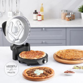 - ماشین پخت پیتزا 10 کاره Gastro کاراجا با توان 1500 وات میتواند تا 400 درجه سانتیگراد گرم شود و تنها در 5 دقیقه پیتزاهایی با طعم فر سنگی برای شما آماده کند.