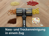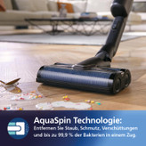 نازل منحصربهفرد AquaSpin به طور همزمان کفهای سخت شما را جاروبرقی میکشد و پاک میکند و زبالهها را هم از جلو و هم از پشت نازل برای تمیز کردن کارآمد با هر ضربه جمعآوری میکند. پس از جاروبرقی دیگر نیازی به دستمال کشیدن ندارید، این امر باعث صرفه جویی در زمان در زندگی پر مشغله روزمره و کاهش فعالیت بدنی می شود. فناوری AquaSpin گرد و غبار، کثیفی، لکهها و تا 99.9 درصد از باکتریها را در کفهای سخت با یک بار حذف میکند.