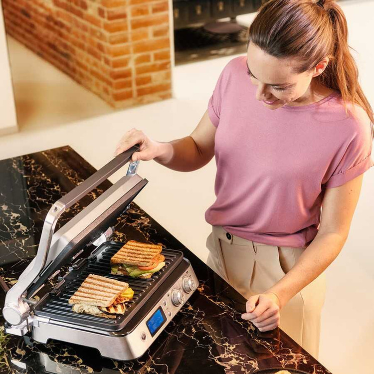 برای صبحانه، ناهار، شام و میانوعدهها نتایج عالی گریل را تجربه کنید. با بزرگترین سطح پخت براون*، ترکیب هوشمند دو صفحه مختلف و سه موقعیت پخت، از تنوع بیحدوحصر لذت ببرید. با توان 2000 وات و المنتهای گرمایشی توکار، سرعت و کارایی را به آشپزخانه شما میآورد و پخت را سریعتر میکند. برای استیکهای آبدار و خوشطعم و مرغهای ترد و طلایی، کافی است دکمه Sear را فشار دهید. این دکمه دمای گریل را برای چند دقیقه تا 250 درجه سانتیگراد افزایش داده و روی گوشتهای ضخیم موردعلاقه شما یک لایه قهوهای خوشرنگ ایجاد میکند که طعم آن را دوچندان میسازد.