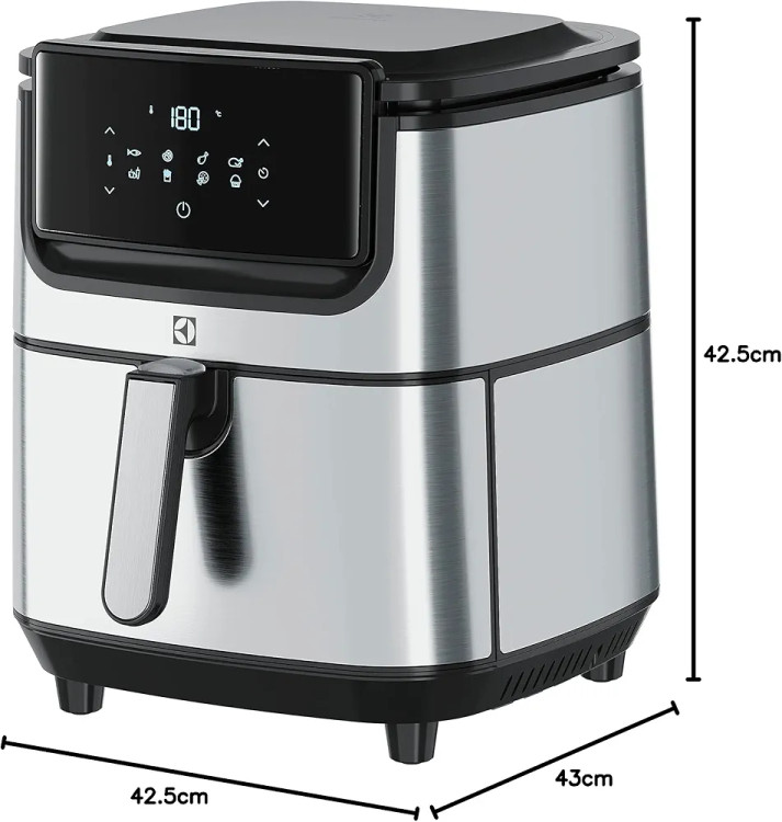 Electrolux E6AF1-6ST Air Fryer, 8 Programs, Touch LCD Screen, 7L Basket Capacity, 5.4L Frying Capacity, Hot Air Fryer, 1800W, Stainless Steel, LCD Screen