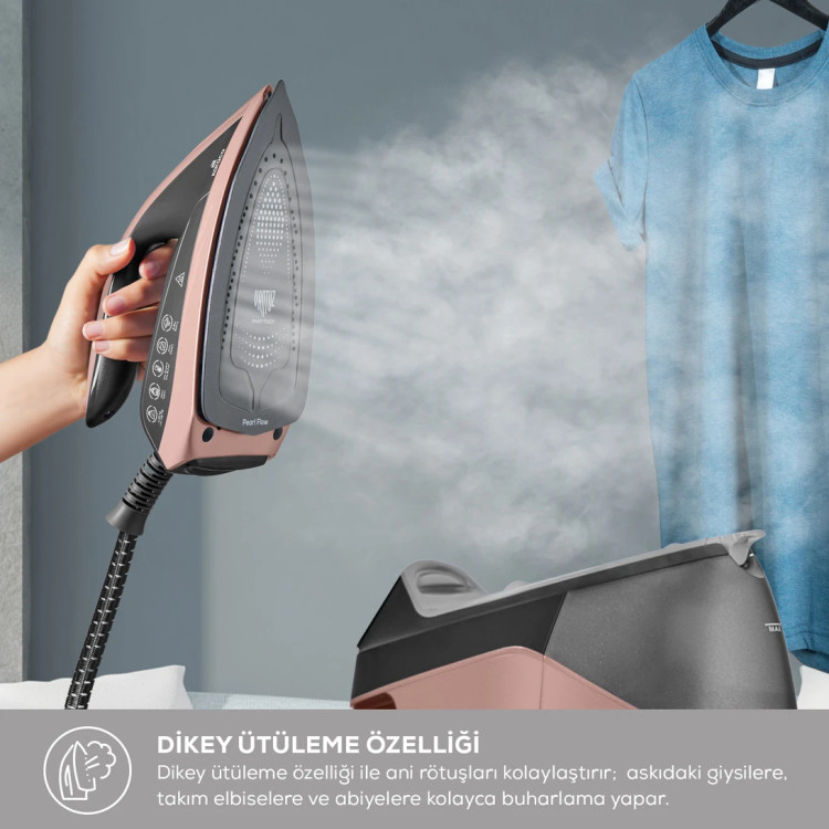 - **کف سرامیکی با پوشش PearlFlow** که با فناوری **دو لایه**، بخار را بهطور یکنواخت و عمیق روی سطح پارچه پخش میکند.