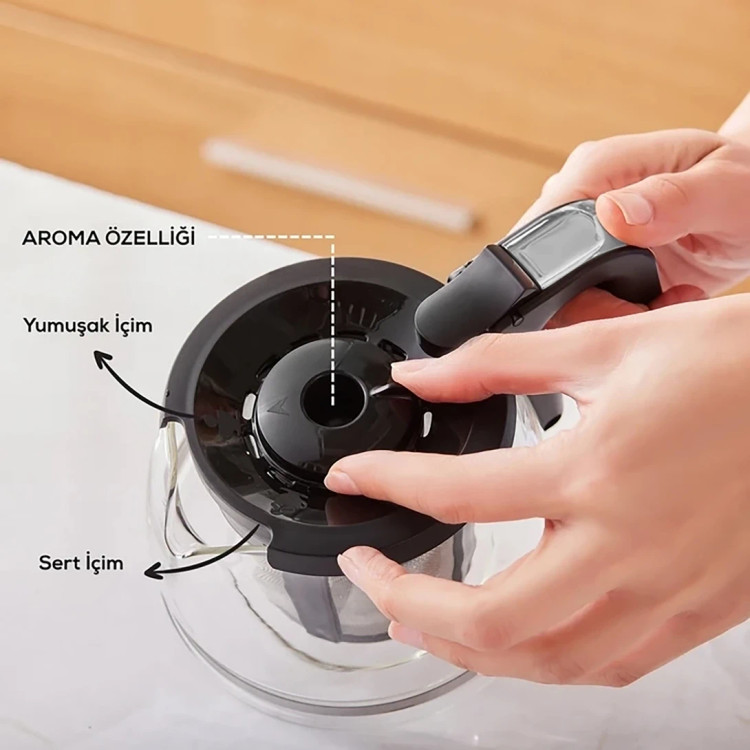 Hatır Plus Mod نهتنها در مخزن قهوه فیلتری، بلکه برای دم کردن چای نیز قابل استفاده است. همچنین بهصورت همزمان میتوانید قهوه ترک یا نوشیدنیهای شیری نیز آماده کنید. برای تهیه چای، از فیلتر مخصوص چای که داخل قوری شیشهای قرار دارد، استفاده کنید.