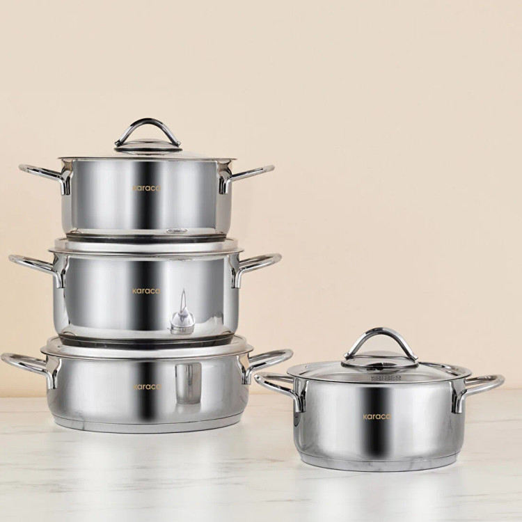سرویس قابلمه استیل ۸ پارچه برند کاراجا ترکیه مدل Powersteel 316+ Sakura