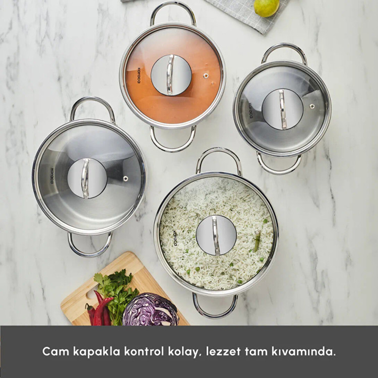 قابلمه 8 پارچه Karaca Sakura PowerSteel 316+ از قدرت فولاد 316+ بهره میبرد و با قدرت فوقالعاده و دوام اضافی ناشی از عنصر مولیبدن، استفادهای بینظیر را ارائه میدهد. این ست با توزیع یکنواخت حرارت در تمام قسمتها، غذاها را به طور متوازن و خوشمزهتری میپزد و گرما را برای مدت طولانی حفظ میکند تا غذاهای شما گرم بمانند. با داشتن قابلمههای 18 سانتیمتر، 20 سانتیمتر، 22 سانتیمتر، قابلمه کبابی 24 سانتیمتر و دربها، این ست به انتخابی ضروری برای پخت غذاهای خوشمزه تبدیل میشود.