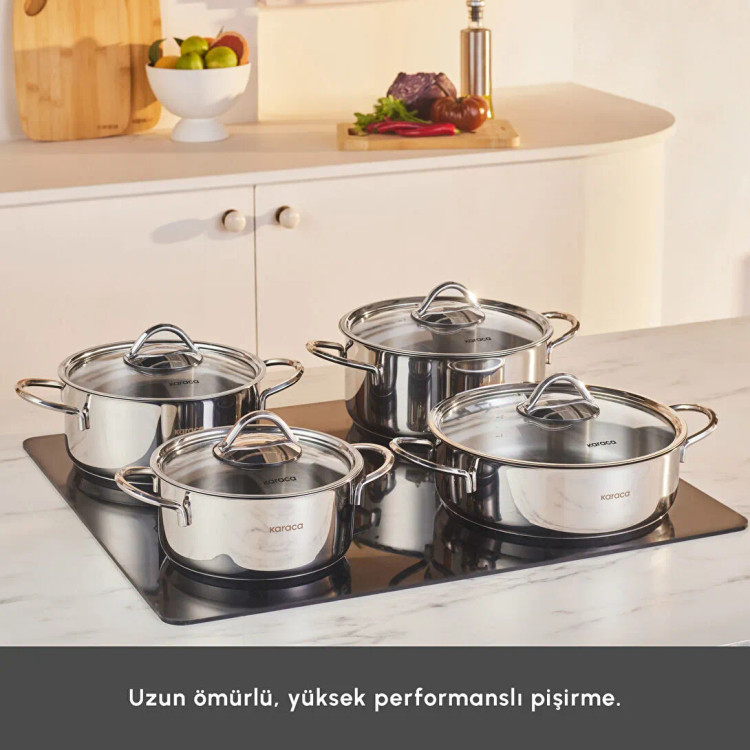ست 8 پارچه قابلمه استیل ضدزنگ Karaca Powersteel 316+ Sakura با پایه القایی