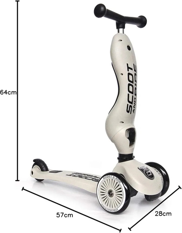 اسکوتر نشیمندار Scoot and Ride Highwaykick 1 – زیتونی، همگام با رشد و فیزیک بدن کودکان، یک همراه بازی سرگرمکننده برای آنهاست. ثبات این محصول به لطف دو چرخ جلو و یک چرخ عقب حفظ شده و امکان حرکت ایمن و راحت کودکان را در حالت نشسته فراهم میکند. این اسکوتر دارای طراحی نوآورانهای است که بدون نیاز به هیچ ابزاری، بهراحتی قابل تنظیم و تبدیل شدن است و بهعنوان یک محصول دوکاره، در صنعت اسکوتر پیشرو محسوب میشود.